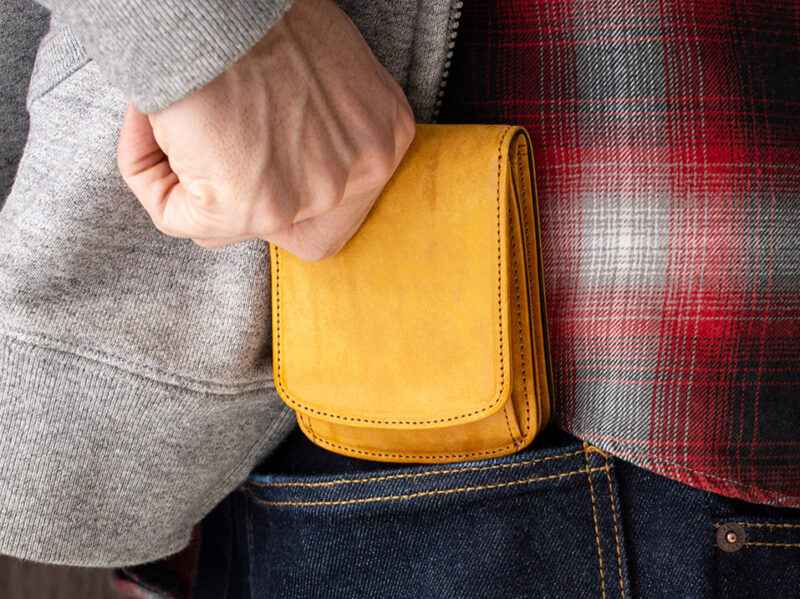 携帯性を極限まで突き詰めつつ、革の表情や色味を楽しみたい方にこそ選んでほしいイエローの薄い財布と言えるでしょう。